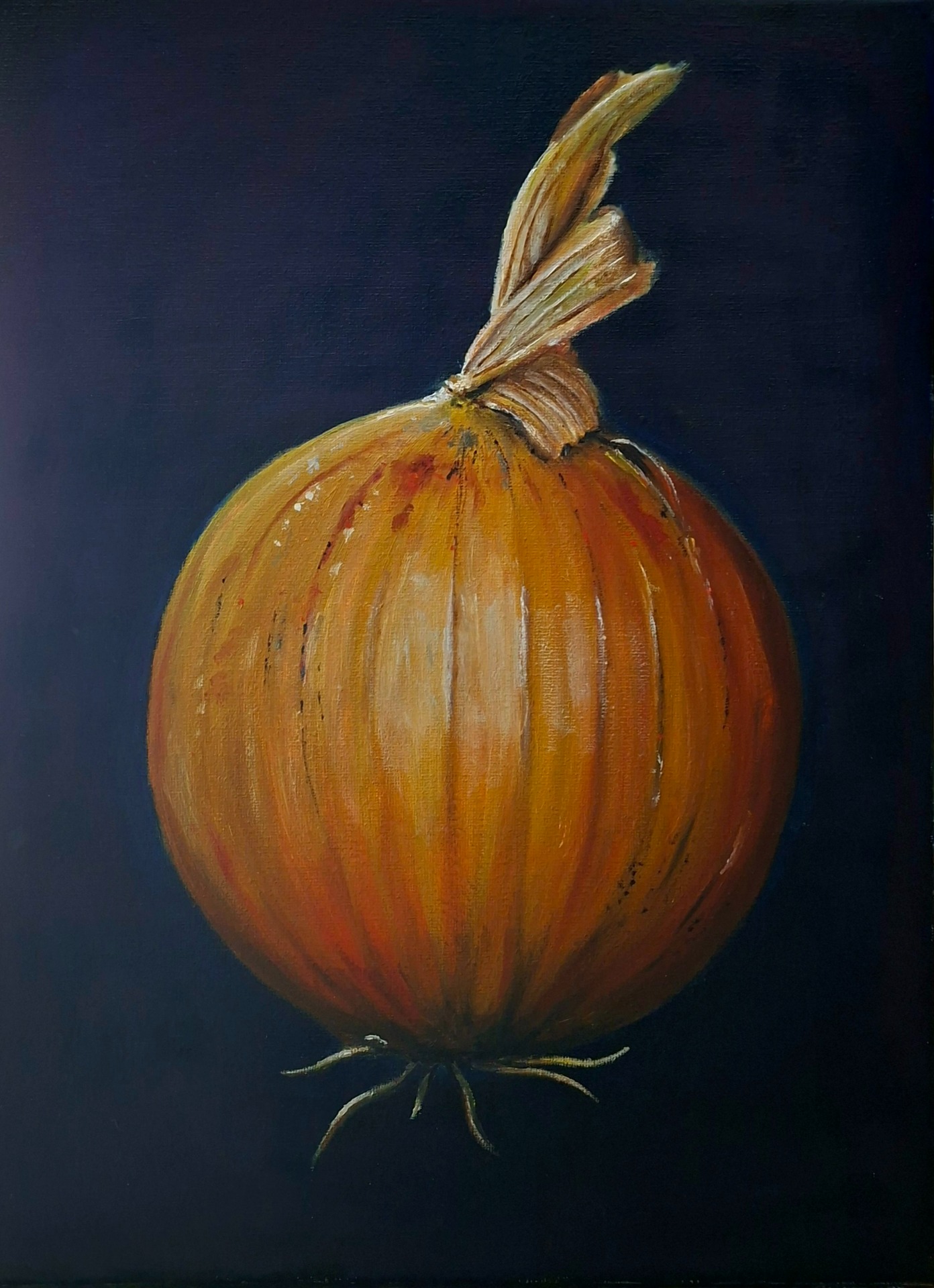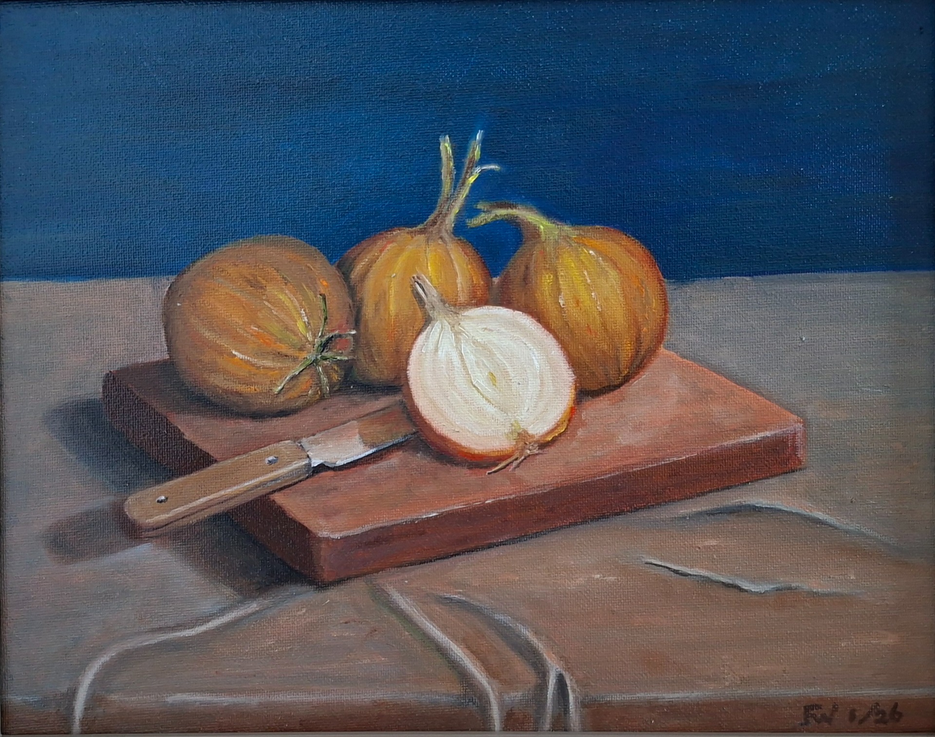 Voor Uien: Rijnsburger Olie op canvas (40x30 cm) en Niet Huilen olie op canvas (28x35 cm)