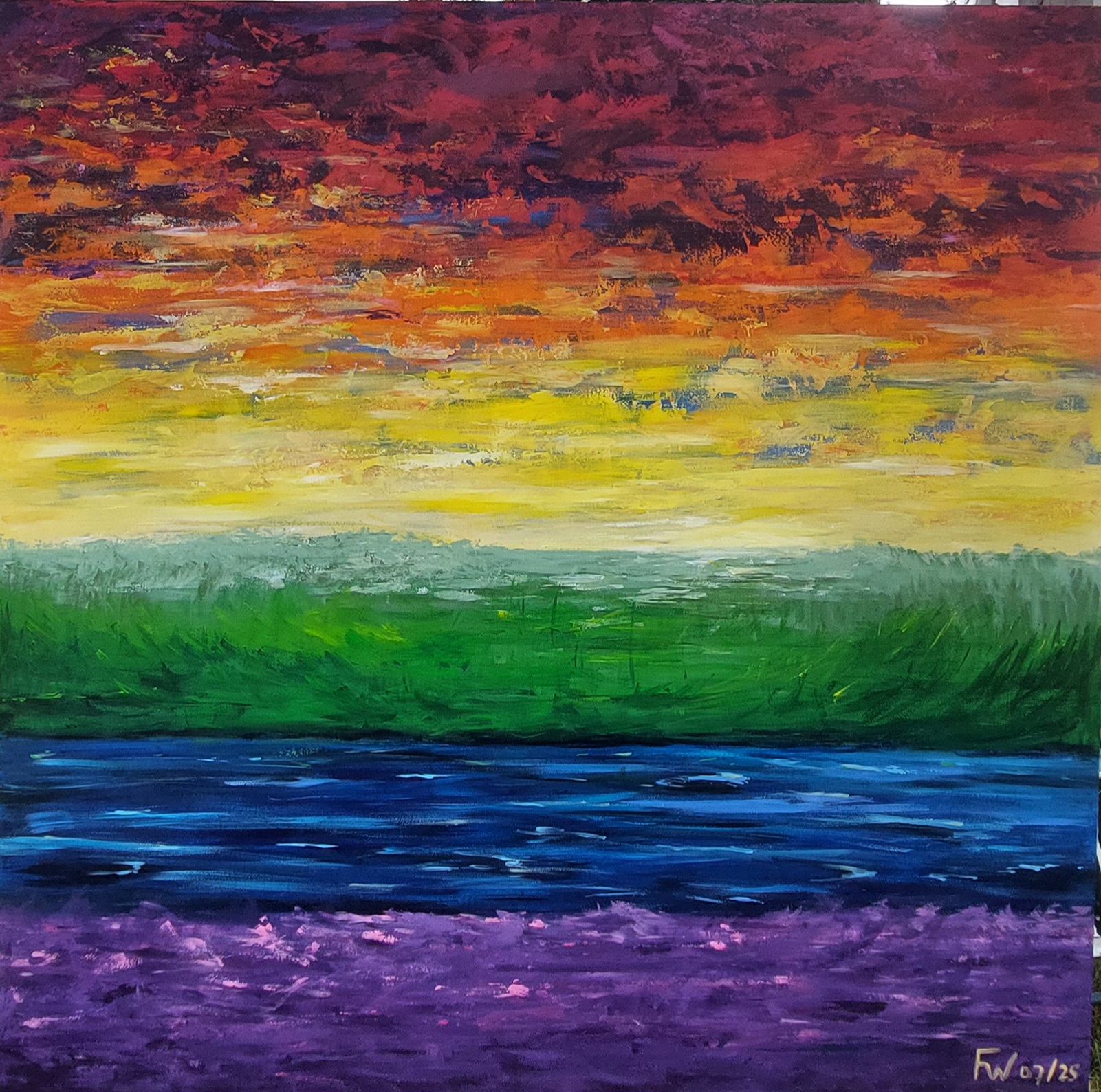 Bijdrage aan het kunstproject The Colorfield Performance. In 1 dag beschilderen kunstenaars een doek van 122x122 cm. Het thema in 2025 was Vrijheid.